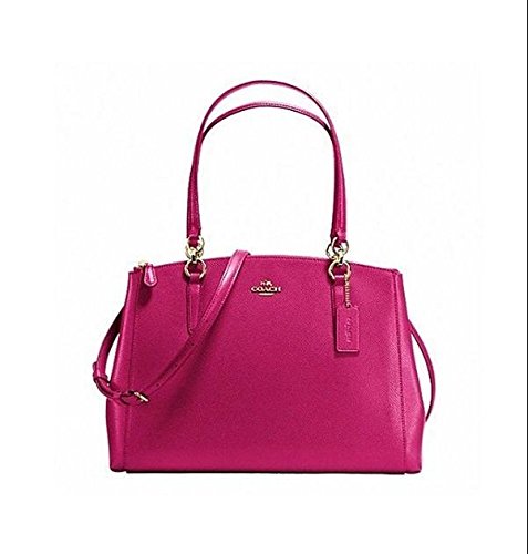-. Brand : Coach -. Color : Pink ruby -. Department : womens -. EAN : 0889532144310 -. ProductGroup : Shoes -. ProductTypeName : HANDBAG -. Size : large -. Title : Coach Crossgrain Leather Christie Carryall Handbag in Pink Ruby F36606 -. UPC : 889532144310 Coach crossgrain leather carryall shoulder handbag Coach hang tag Gold hardware Coach logo at the front Double handles with 9" drop Shoulder strap up to 23.5" drop Interior: Inside have 4 separate compartments: (1): Large zip pocket (2): Snap closure with 2 slip pockets (3): Snap closure (4): Zip pocket with zip pocket inside Coach serial leather creed inside Inside is fabric lining Measures: 14" (W) Bottom X 10.5" (H) X 4"(D)
