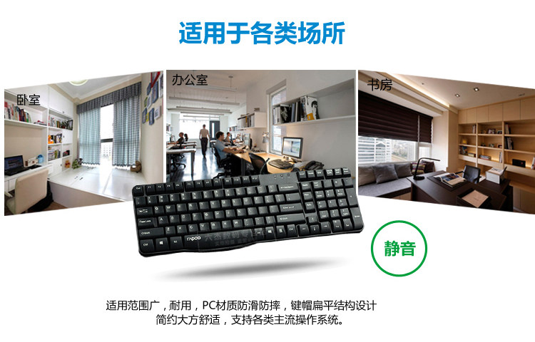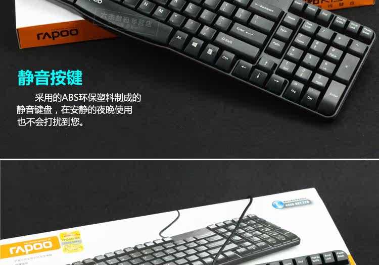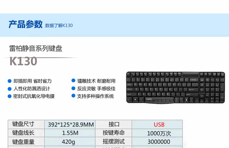 Rapoo雷柏K130有线游戏键盘USB防水静音台式机笔记本电脑办公家用