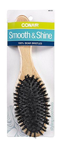 -. Feature : 100% Boar Bristle Cushion Brush / Boar Bristles Distribute Essential Oils from the Scalp to Smooth Hair and add Shine / Helps Eliminate Flyaways and Smoothing Pulled-Back Styles / Beautiful Natural Wood / Does not Snag or Pull Hair