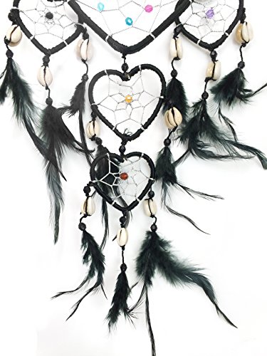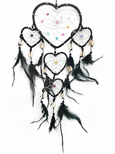 PEPPERLONELY Dream Catcher Heart Shape Black Feathers 5x4.5 Inch Heart, 18 Inch Long