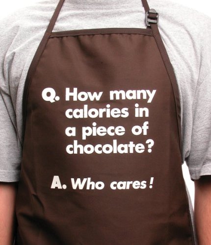 CK Products Brown Expression Cooking Apron "Q. How many calories in a piece of chocolate? A. Who cares!"