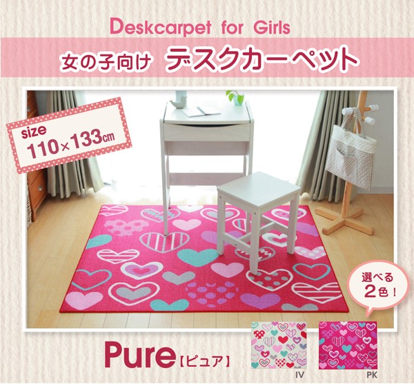 【商品名】デスクカーペット 学習机用マット 女の子 ハート柄 『ピュア』 アイボリー 110×133cm