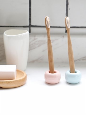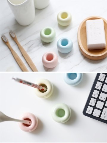 Helengili 4 Pcs/pack Mini Ceramic Toothbrush Holder Porcelain Tooth Brush Stand Ring Also Perfect For Your PensStorage Organizer (4 color)