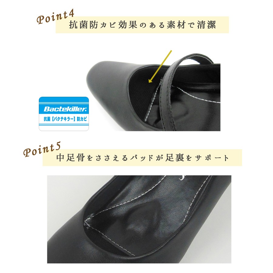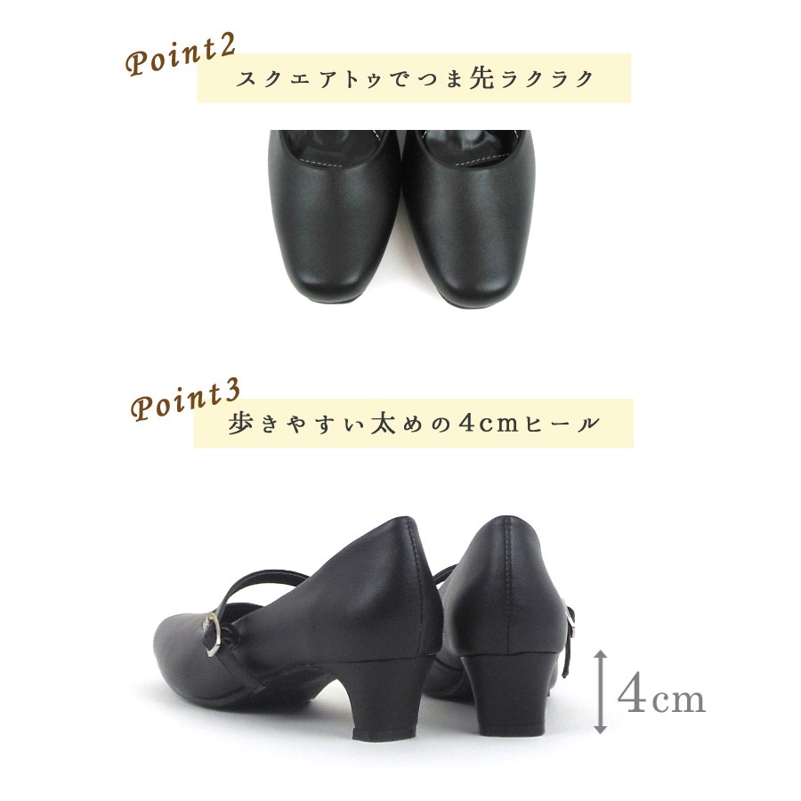 美脚効果もありながら歩きやすくて疲れにくい4cmヒールプレーンパンプス。
