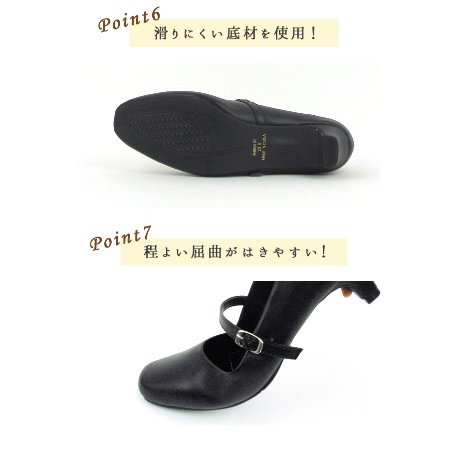 安定感のある太めヒールは長時間歩いても疲れにくく安心の履き心地。