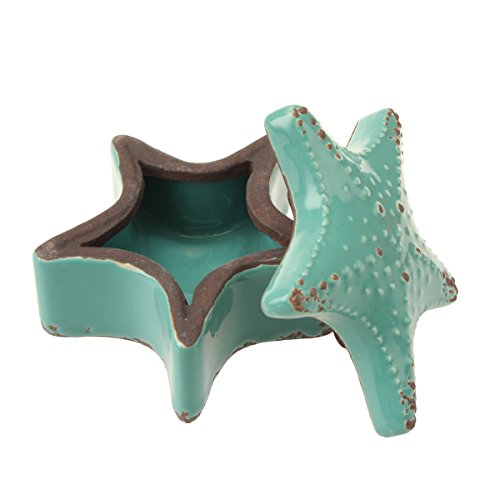 - This decorative ceramic storage container features a unique starfish design & worn aqua finish adding a vintage feel to your coastal home decor