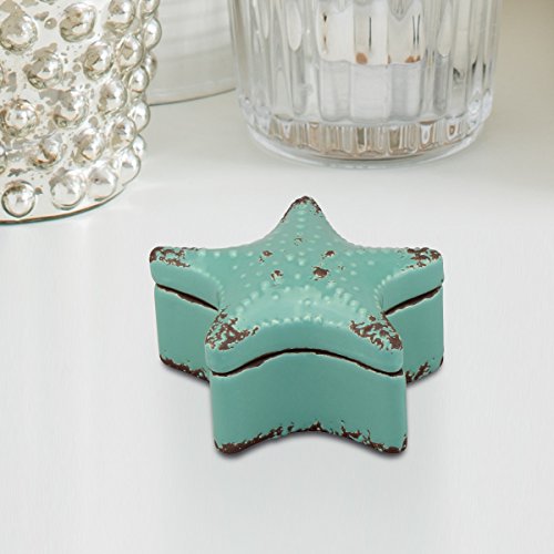 Stonebriar Small Worn Aqua Starfish Jewelry Box, Decorative Keepsake Trinket Boxes, Fun and Unique Gifts for Birthdays, Christmas, Weddings, or Any Special Occasion