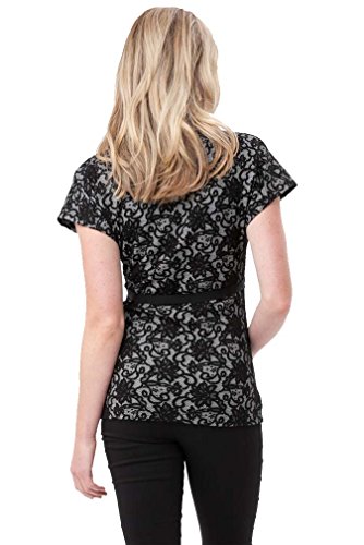 Binding : Apparel Product Description This gorgeous lace overlay top can be worn during and after pregnancy! Perfect choice for a special occasion or pair it with jeans for a shabby-chic look. Capped sleeved with a ribbon tie. Sizing (order pre-pregnancy size) XS=4 S=6 M=8 L=10 XL=12 2X=14 Polyester Hand wash/Lay flat to dry 0