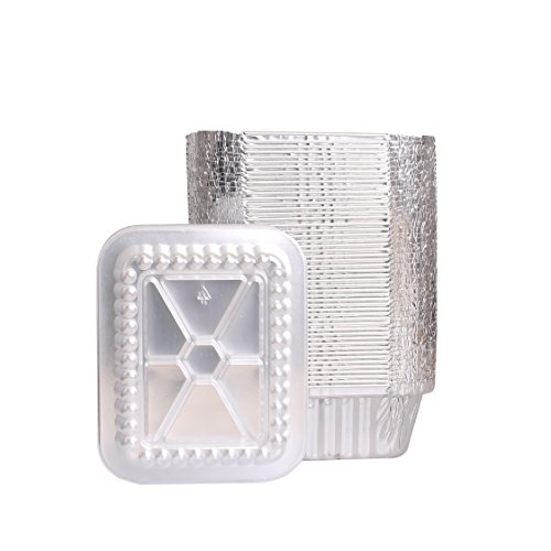 -. Title : Party Bargains Aluminum Oblong Foil Pan Containers and plastic dome lids, 1lb Capacity, Aluminum Foil Take-Out Pans