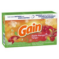 -. Binding : Health and Beauty -. Brand : GAIN -. Color : A530 -. Label : Gain -. Manufacturer : Gain -. ProductGroup : Health and Beauty -. ProductTypeName : HEALTH_PERSONAL_CARE -. Publisher : Gain -. Size : 2 pack -. Studio : Gain -. Title : Gain With Freshlock Apple Mango Tango Dryer Sheets, 105 Count