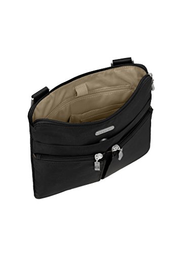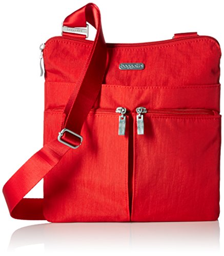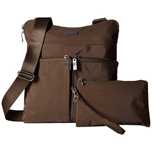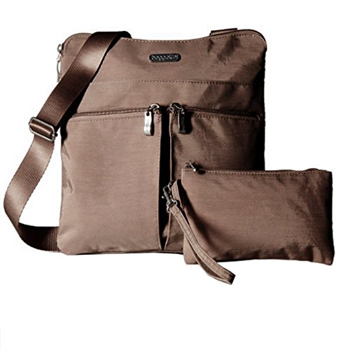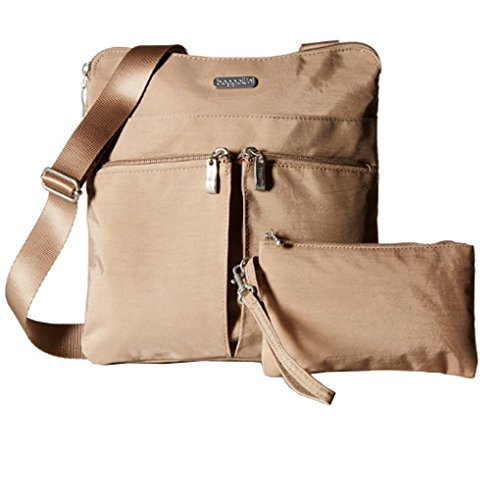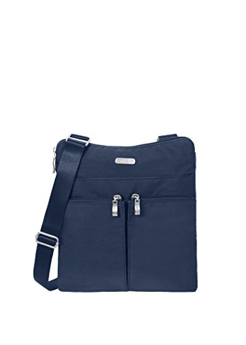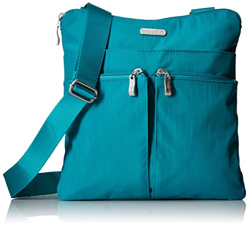 The Baggallini Horizon crossbody bag is a slim profile bag that is ideal as a travel bag as well as an everyday one! The crossbodystyle and 52” adjustable strap keeps your hands freeand the interior and exterior pockets have a spot for all your necessities, keeping them organized and neat. The zippered exterior pockets keep your most important items, like a cell phone, camera or credit card, close by, easy to access and safe. Made of lightweight, water-resistant nylon, this spacious bag can hold it all without becoming too heavy. Additionally, this bag comes with a removable wristlet.Feature