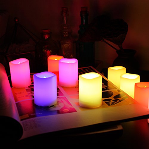 Flameless candles, Multi-color LED Votive Candles with Remote and Timer, 1 set of 10 pcs with 12 different colors