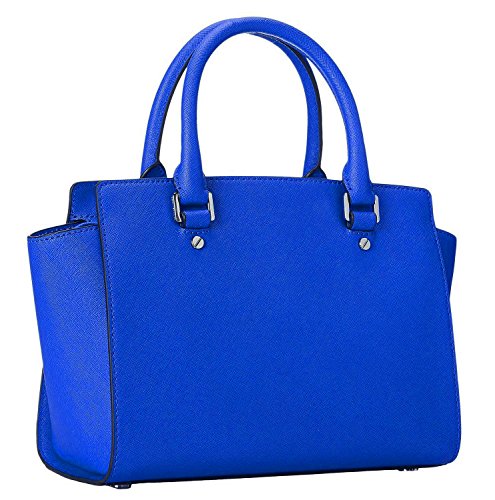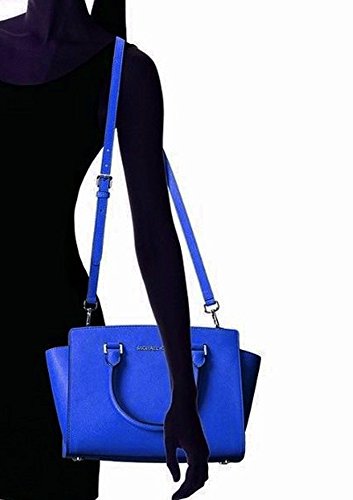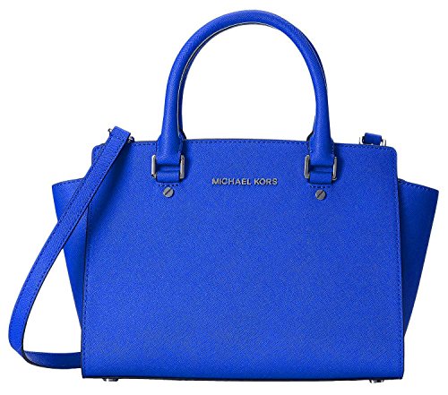 -. Binding : Apparel -. Brand : -. Color : Blue -. Department : womens -. EAN : 0888235584553 -. Feature : Gorgeous weather resistant saffiano leather with polished silver tone hardware / Measures approx. 13 inch (W) x 8 inch (H) x 5.5 inch (D) / Zipper top closure; fully lined interior with large zipper pockets & multifunction slip pockets / Two leather handles with 4 inch drop; MK sleeper bag included. / Detachable & adjustable shoulder leather strap with 18 inch drop -. MPN : 30T3SLMS2L -. PackageQuantity : 1 -. PartNumber : 30T3SLMS2L -. ProductGroup : Apparel -. ProductTypeName : BAG -. Size : Medium -. Title : Michael Selma Medium Convertible Satchel, Elctric Blue -. UPC : 888235584553