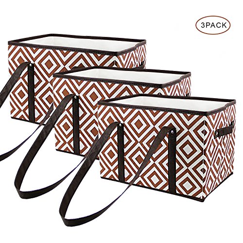 Jerry & Maggie - Shopping Grocery Bag Box - Reinforced Reusable Shopping Box Collapsible Foldable Portable Large Polyester ( 3 pack)