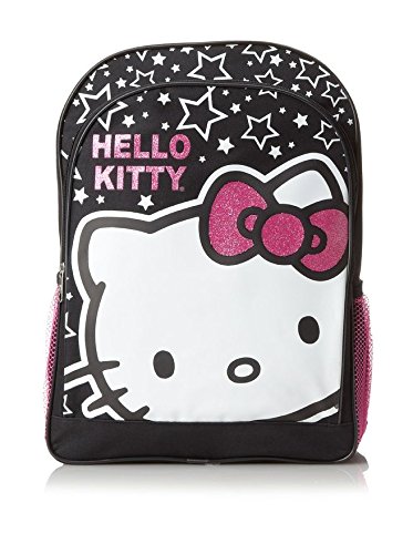 Sweet style for school. With star graphics and a glitter bow, this girls' Hello Kitty backpack is an adorable essential. In black/pink/white.