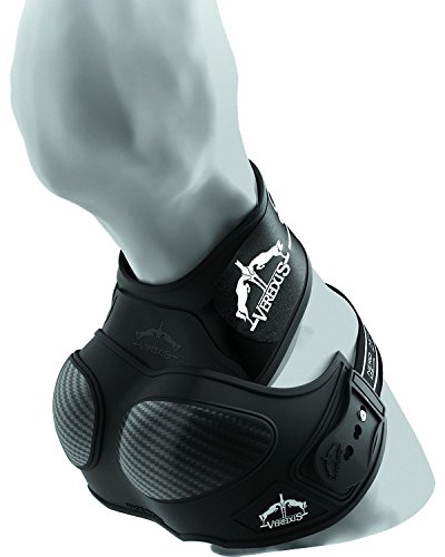 Studio : ENGLISH RIDING SUPPLY Publisher : ENGLISH RIDING SUPPLY Binding : Apparel Product Description Veredus Carbon Shield Heel Protector Boot Revolutionary overreach boot designed for protection of the whole heel area. Useful for every discipline and can be used on all surfaces. The particular anatomic shape and protective material guarantees a perfect fit on the horse's heel to give total protection. Anatomically designed protection in an elastic material that conforms perfectly to the horse's foot, therefore eliminating rotation of the overreach boot itself. Extra carbon protection on heel area, which is at particular risk of injury and bruising. Double point fastening to ensure perfect fitting. Quick-release tips in non-deformable FLEXTAN on stainless-steel hooks. Sold in pairs. Features: Overreach boot useful for every discipline Anatomically designed Extra carbon protection in heel area Double point fastening Item Specifications: Sizing: Small 6 1/2" to 7 1/2" (17 to 19 cm) Medium 7 1/2" to 9 1/2" (19 to 24 cm) Large Over 9 1/2" (over 24 cm) 0