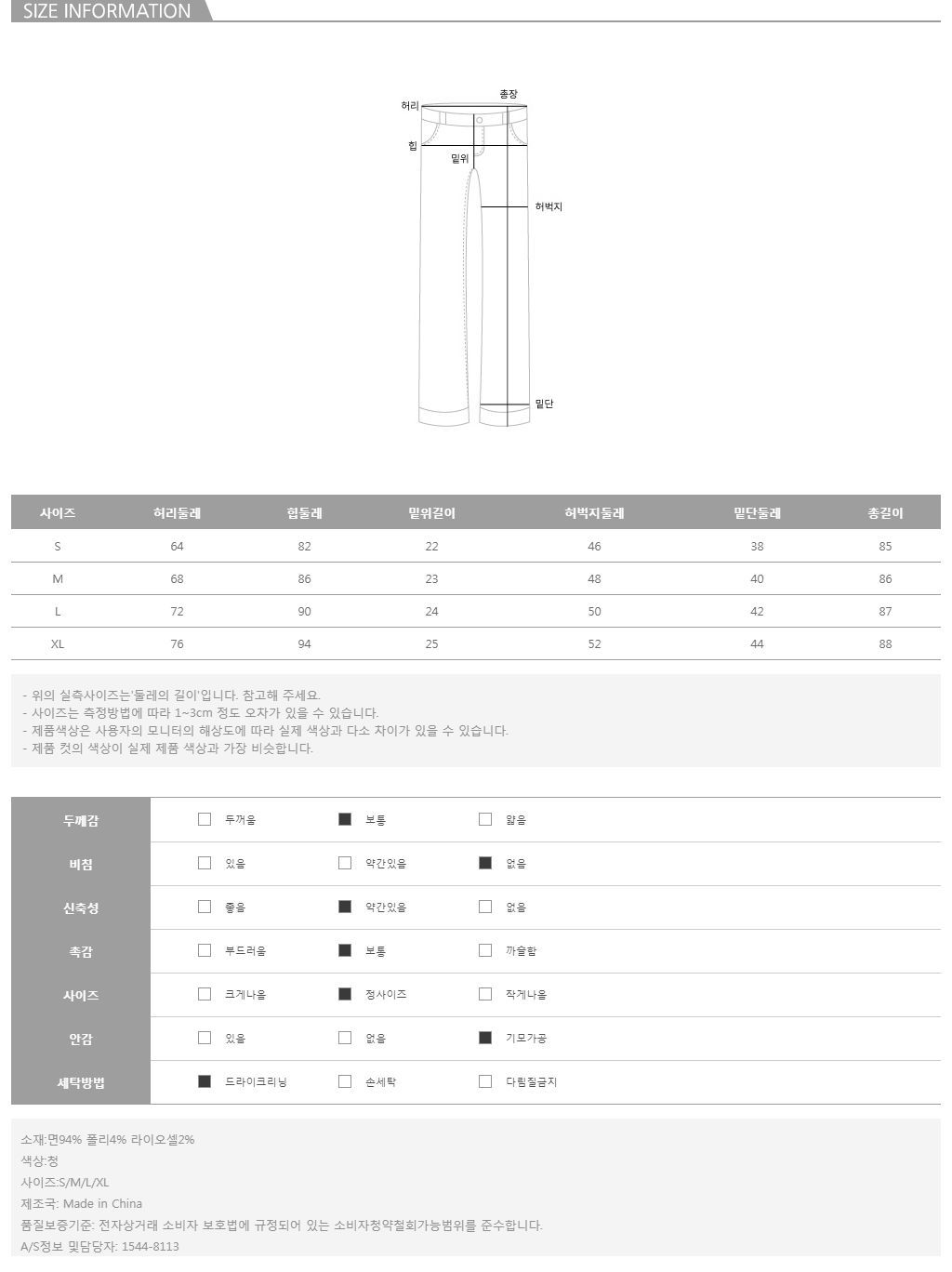 모델의 착용 컬러/사이즈는 청/S 입니다.