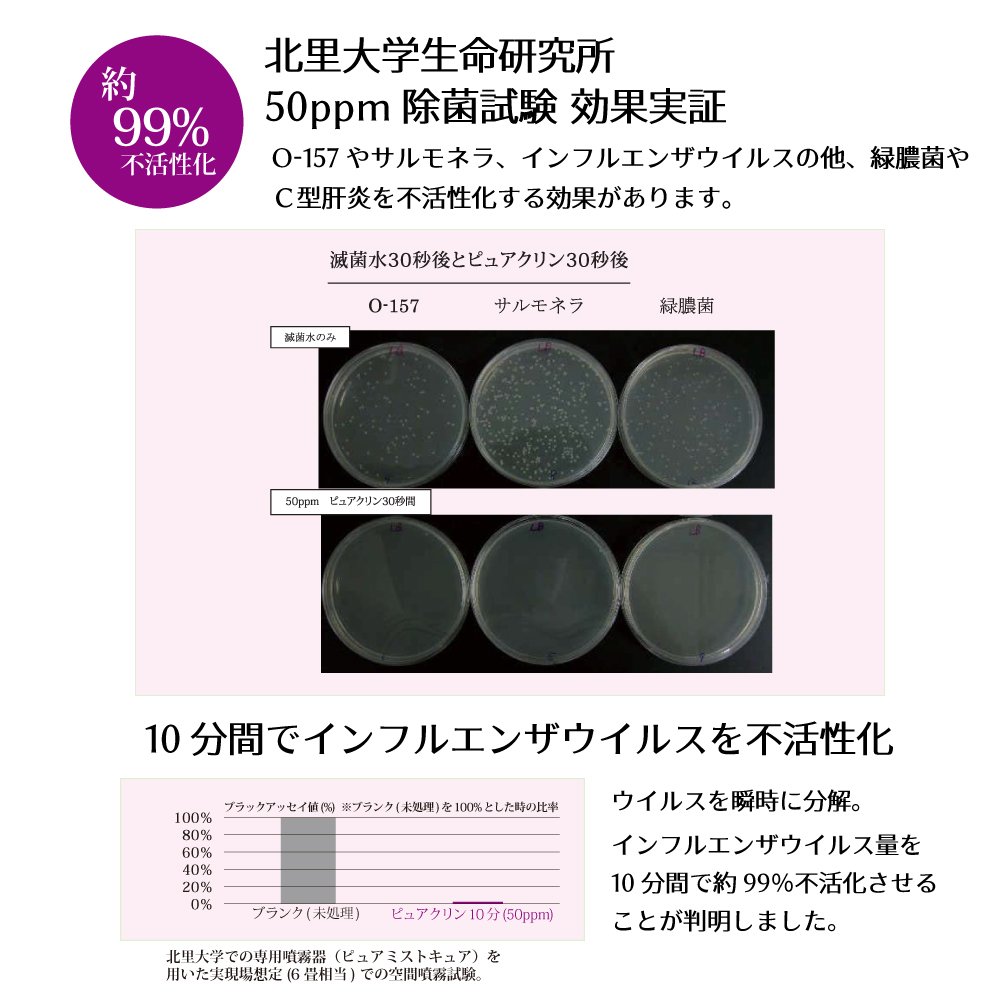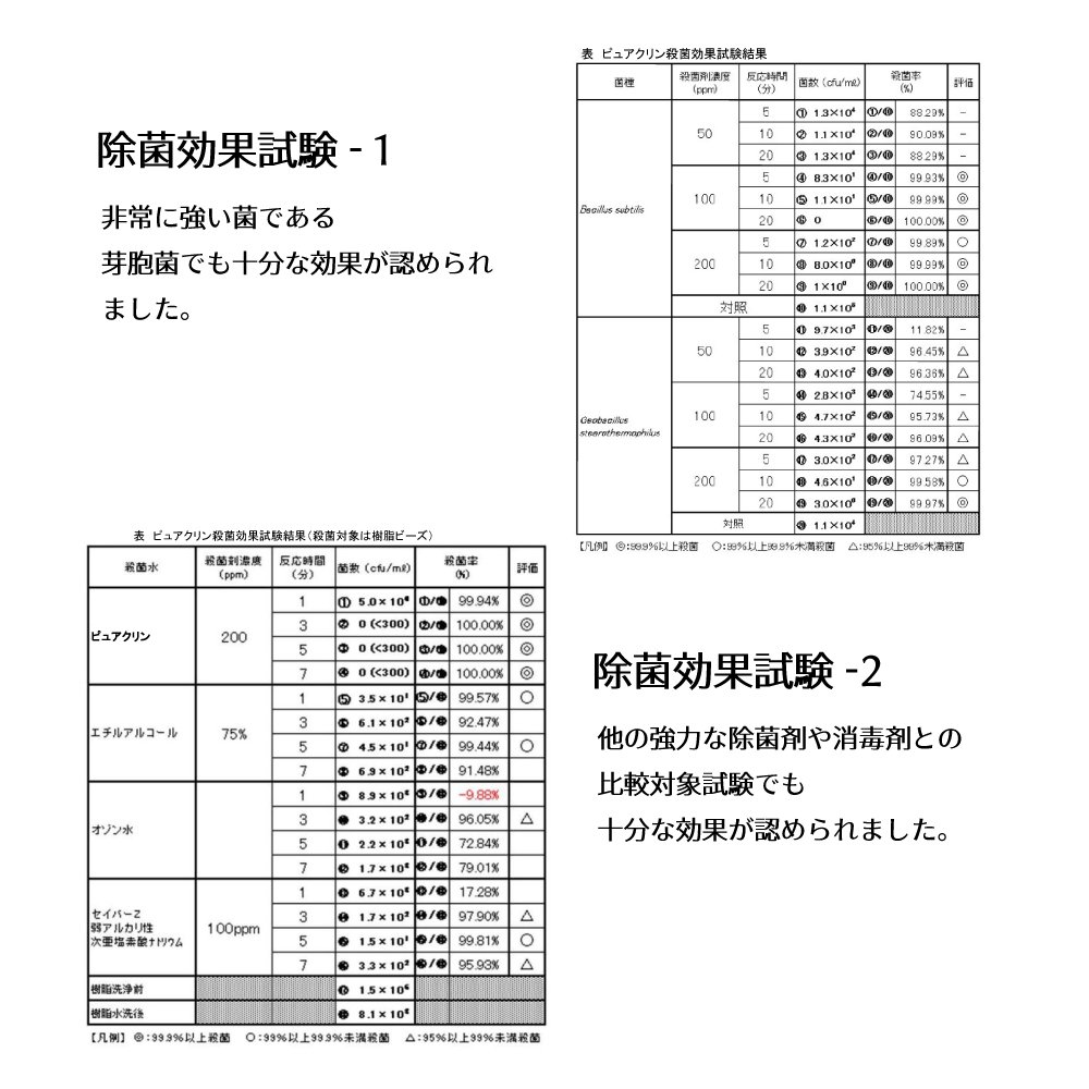 Pure CLEAN automatically adjusts the pH near the pH with the highest sterilizing capacity by our proprietary manufacturing method, and demonstrates the sterilization capacity to the maximum.