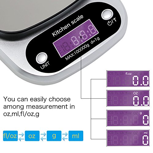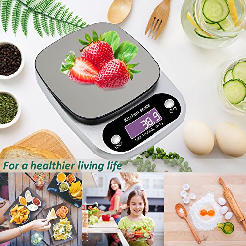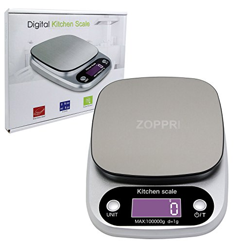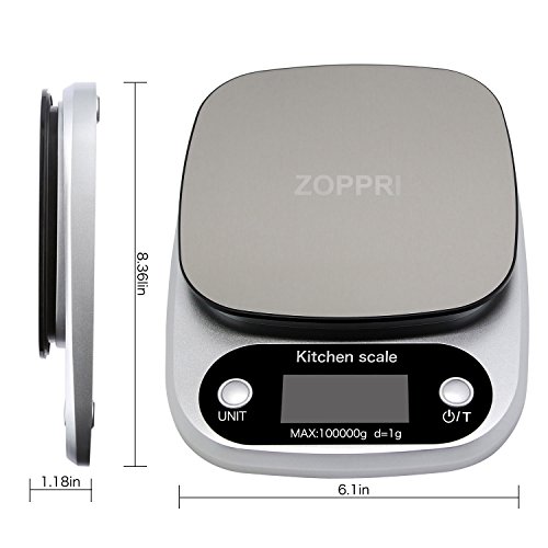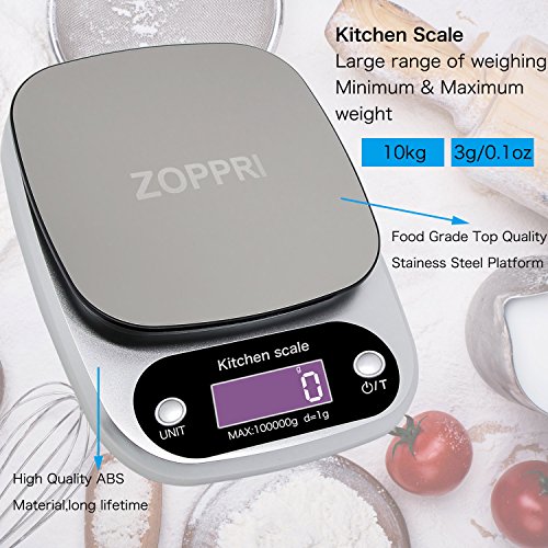 ZOPPRI Digital Kitchen Scale,Stainless Steel Multifunction Food Scale with LCD Display,22lb 10kg (Sliver)