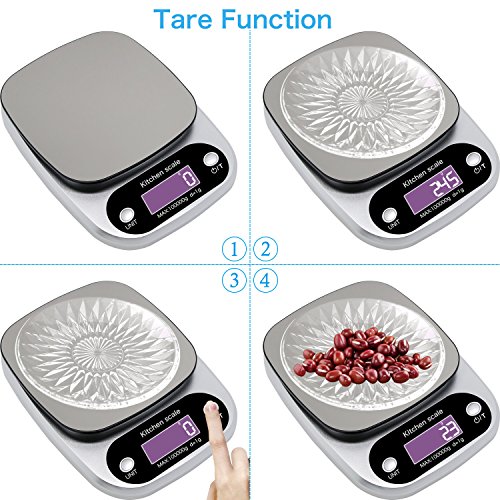 - ★TARE FUNCATION:Precision Tare touch button calculates the net weight of your ingredients by automatically subtracting the weight of any bowl or container.