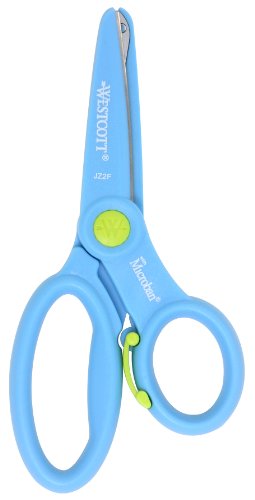 These Preschool Training Scissors by Westcott are infused with Microban protection to inhibit the growth of bacterial odors. Their spring assisted safety blades will not cut fingers.