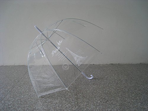 -. Feature : Romantic Floral Print Umbrella Design / Cute Bubble Dome Shape Umbrella / Auto Open & Matching Color Umbrella Hook Handle / Hook Handle, Clear Transparent, cherry blossoms, Eiffel Tower Pattern