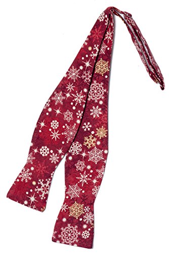 -. Feature : Handmade Self-tie Bow Tie - Red Vintage Snowflake Holiday Design Premium Cotton Bow Tie - Boys to Men's Sizing - Crafted in the USA by Extras So Sweet, LLC - The "Clarence" Bow Tie / This self-tie bow tie is available in Boys 6 to 12, and Adult-Men 14 and up. See Extras So Sweet's size chart in picture tab. / Fully adjustable wrap around strap equipped with a solid steel slide to properly adjust and ensure a perfect yet comfortable fit. / Bow ties handcrafted in the USA by Extras So Sweet, LLC / Matching pocket square handkerchief available in separate listing by Extras So Sweet LLC!