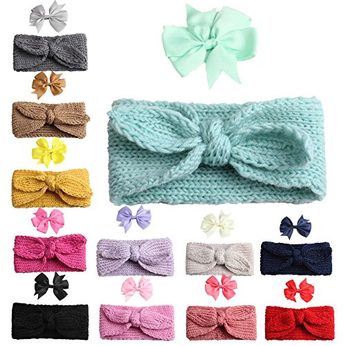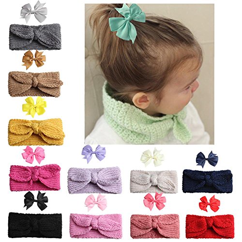 | (ZHUOTOP)/Accessories/Hair Accessories/DIRECT FROM USA/ZHUOTOP Baby Kids Cute Flower Warmer Knit Headband Scarf Fashion Neckerchief bowknot Hair Clip Set |