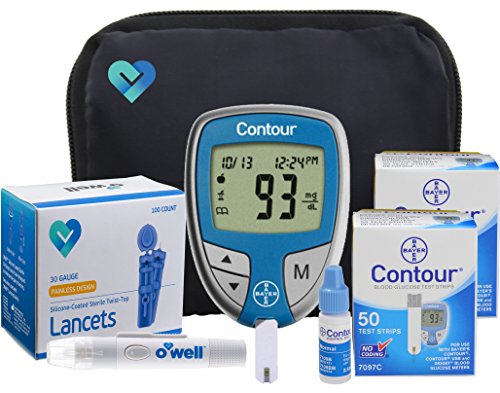 -. Title : Bayer Contour Diabetes Testing Kit - Bayer Contour Blood Glucose Meter, 200 Bayer Contour Test Strips, Bayer Contour Control Solution, 200 OWell Lancets, OWell Lancing Device, Manuals & Carry Case