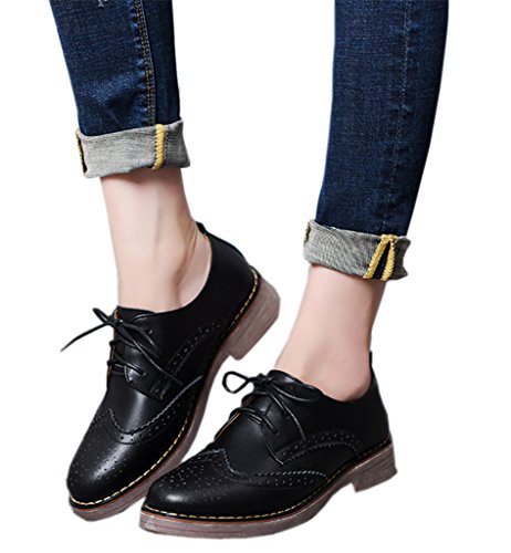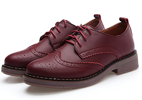Binding : Apparel Product Description Material:Leather Sole: Rubber Heel Type: Flat Color: As picture(Black,Brown,Wine Red) Step into on-trend style with these retro-chic, leather oxfords. A great menswear look you can wear any day, the oxfords have a classic silhouette and sensible heel. These cute and comfortable shoes match any outfit either it be dressy or everyday. With brogue detailing, these sophisticated lace-up flats feature menswear styling with a feminine touch. DADAWEN Shoes Company was a collection of production, design, sales of women's shoes ,Men's shoes, boy's shoes, girl's shoes company. We will offers the best quality at low price and confidently ensure the prestige quality of our product. We carries a diverse and wide range selection of the latest trends and hottest a la mode fashion such as Boots, Military Style, Espadrilles, Flats, Lace-Ups, Loafers Slip-Ons, Pumps, Sandals, High Heels, Platforms, Casuals, Dress Shoes, Oxfords, Bridal shoes and many more.
