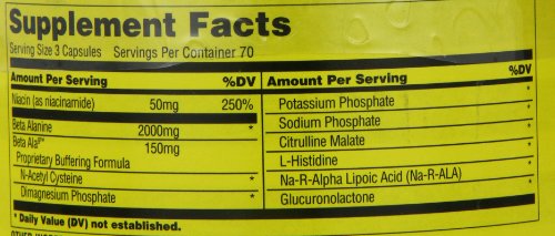 Studio : Universal Nutrition Publisher : Universal Nutrition Binding : Health and Beauty Product Description Universal Nutrition’s Beta Ala9 combines beta alanine along with 8 key support nutrients, helping to form the most potent beta alanine supplement available. Beta alanine is needed to help promote high levels of intramuscular L-carnosine. L-carnosine, in turn, plays a key role in maintaining proper muscle ph. L-carnosine is naturally occurring and helps to soak up the positive hydrogen ions that are released through intense exercise. These hydrogen ions cause muscle ph to drop, making muscle ph more acidic. The result? Increased muscular fatigue and decreased strength. This is where Beta Ala9 comes into play. It works to boost the muscles’ natural level of L-carnosine, assisting the muscle in buffering the overload of positive hydrogen ions produced from intense workouts. Coupled with a specialized absorption and buffering blend, Beta Ala9 aids muscles and helps ensure that they are working at optimum levels to enhance muscle cell buffering while also combating dreaded free radical production. 0