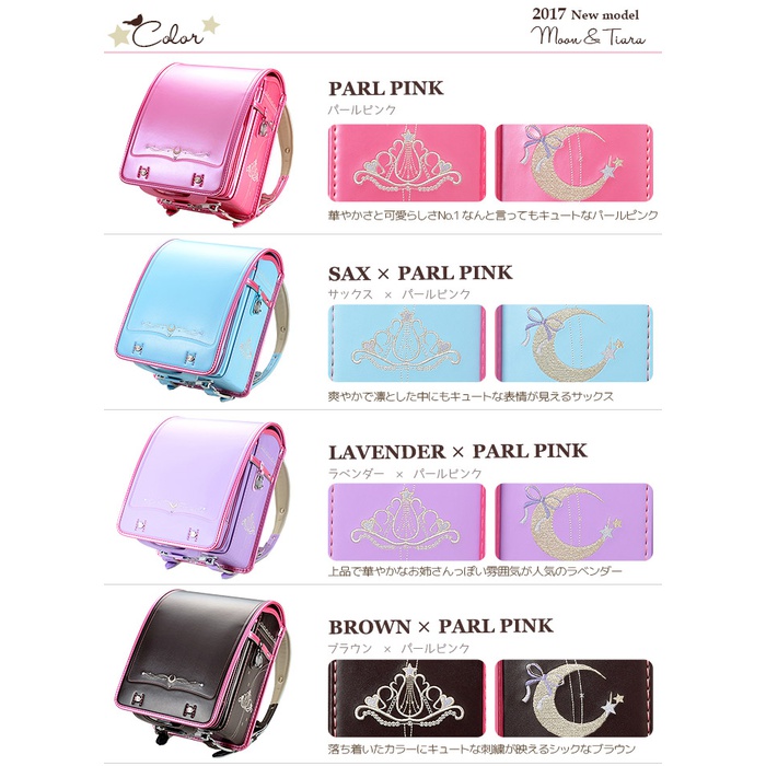 란도셀 피트상 소녀 2017년도 문 티아라 자수 11023 A4플랫 파일 대응 소녀 일본제 6년 보증 내일락 대응