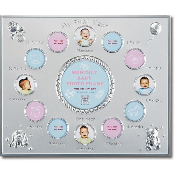 ベビーの誕生からの成長が記録できます。半立体に浮き出したベビーモチーフが特徴。 製造国:中国 素材・材質:アルミ・ガラス 商品サイズ:外寸サイズ:30×25×1cm 重量:約700g 仕様:壁掛・卓上両用フォトサイズ:サービスサイズ(89×127mm)1枚、ミニサイズ(45×45mm)12枚 付属品:取扱説明書 ※サプライヤー直送品 ご注文後3~4営業日後の出荷となります【商品名】ユーパワー Simple & Basic マンスリーベビーフォトフレーム サークル 13ウィンドー アルミ MF-02501