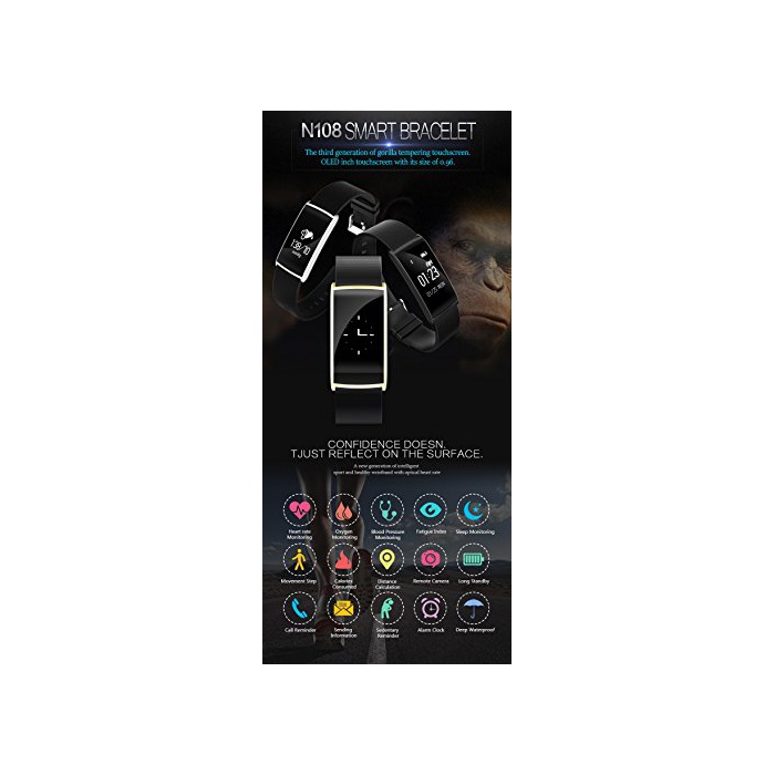 Thinker 혈압을 측정N1108 혈중 산소 지능 팔찌,운동심 박모니터링 지능 팔찌,터치 패널을 Bluetooth팔찌에 적용되는 iOS애플 시스템이나 Android시스템,기능:심박측정,혈중