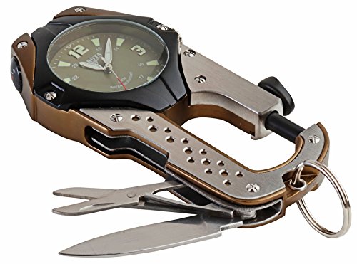 -. Feature : LEDマイクロライト / ステンレスナイフ / ステンレスハサミ / コンパス / 日本製クオーツムーブメント