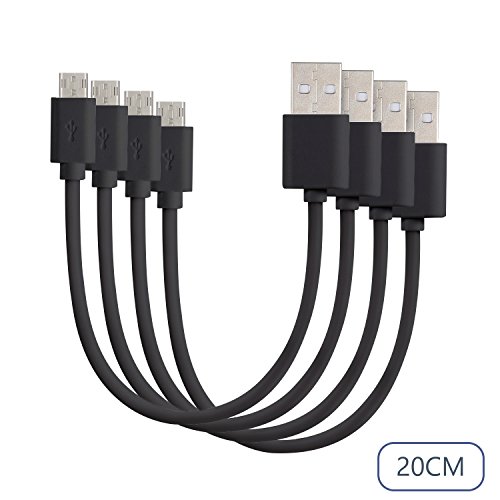 Micro USB Cable 8 Inch [4-Pack] by Wasserstein for Android devices, e-readers and all other Micro USB devices from brands such as Samsung, HTC, Motorola, Nexus, Nokia and more (Black)