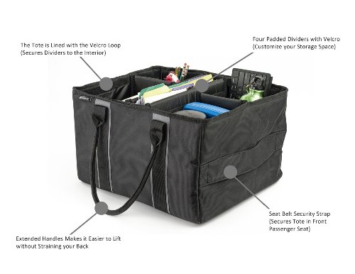 -. Feature : Durable outer shell / Puncture proof padded inner walls and bottom / Comfortable extra long handle for easy carrying / Double sided velcro on every divider / Seat belt loop secures tote to seat
