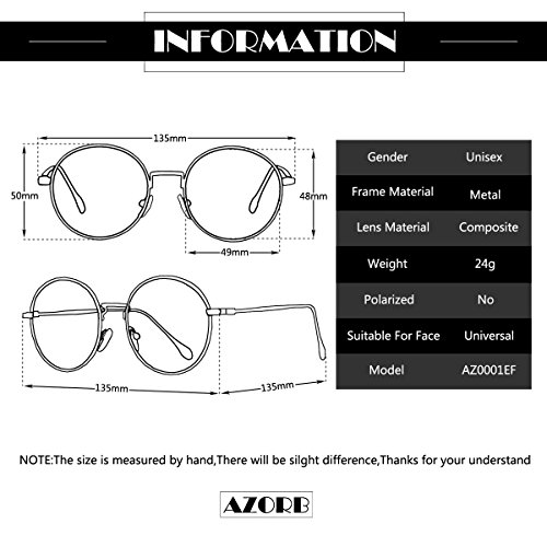 AZORB Non-prescription Circle Round Clear Glasses for Men Women