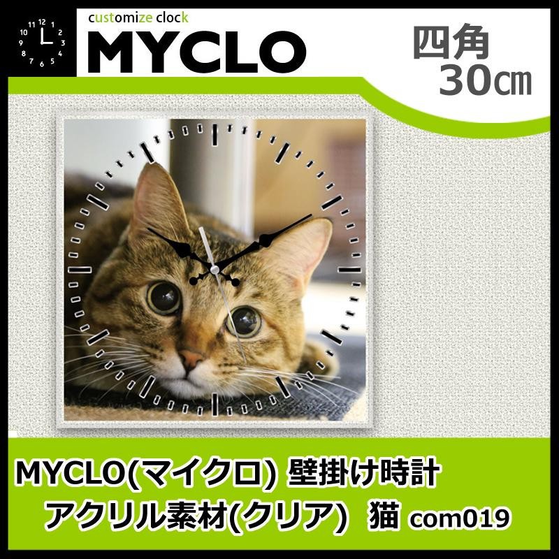 | こちらをじっと見つめる可愛らしい猫の写真が大きくプリントされた壁掛け時計です。専用のBOXに入れてお届け致しますので、自分用はもちろんプレゼントにもピッタリです♪ |