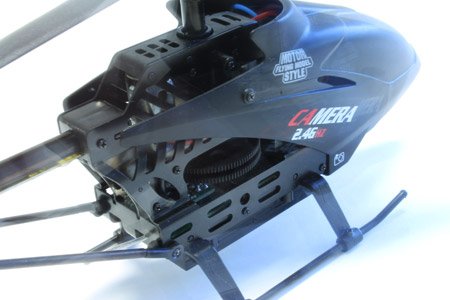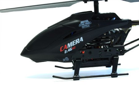 - Feature : Good quality helicopter with camera to take pictures and videos / channels for 6 directions: up, down, forward, backward, turn clockwise and anti-clockwise / 4-in-1 infra-red receiver assemble 3-axis gyro, ESC, mixer and receiver / Metal alloy frame with elastic blades and flybar endure crash. Transmitter supports 3 channels for 3 heli fly at the same time / Over charging protection prolong life span of Lipo battery. Over current protection technology