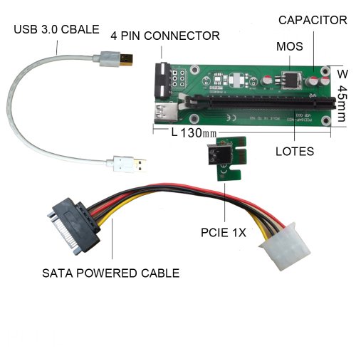 Studio : PCIE Mirco Publisher : PCIE Mirco Binding : Electronics Product Description This new Powered 1x to 16x could fix any slots on your motherboard. Perfect for instances where video cards are needed outside a case or for use in Mining Litecoin, Dogecoin, Mooncoin or any other Altcoin.