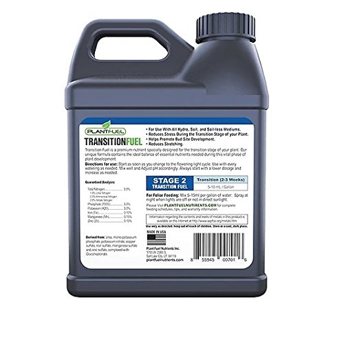 Plant Fuel Nutrients | TRANSITION FUEL | Liquid Fertilizer for Soil, Hydroponic and Other Grow Mediums. Formulated for the Transition between Vegetative and Bloom stages of your plant (Quart)