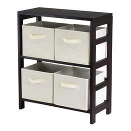 -. Title : Capri 2-Section M Storage Shelf with 4 Foldable Beige Fabric Baskets