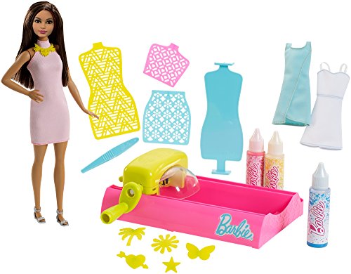 -. Feature : Create uniquely designed fashions for Barbie with a colorful paint-splash effect using the Barbie Crayola Color Magic Station doll and playsets! / Each set includes all the tools needed to create your fashions: three washable fashions, the Color Magic Station, one full-length stencil pattern, two half-length stencil patterns, five smaller stencils, three Crayola paint colors, tweezers and Barbie doll to showcase the looks. Different sets feature diverse looks and fashion pieces / Start by selecting one of the three dresses, placing the fashion on the dress form and placing the dress form into the Color Magic Station / Pick a stencil from the included options, like a graphic pattern or a star / One full-length pattern, two half-length patterns and five smaller stencils are included