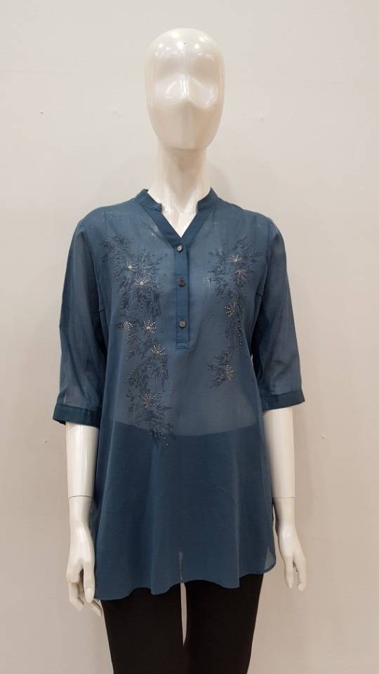 핫픽스 프린트 디테일 면아사 롱블라우스-JA6U6-WRB400