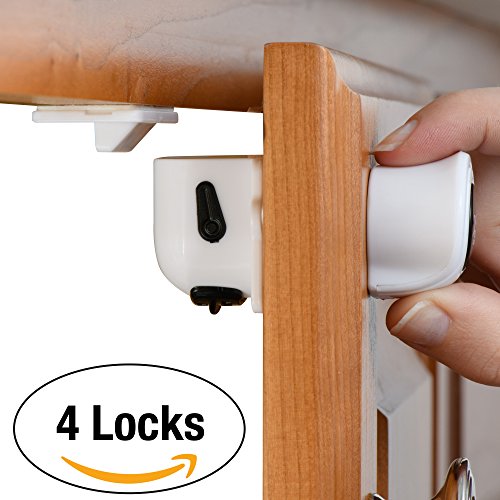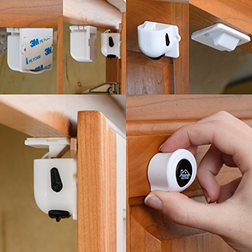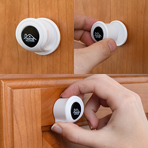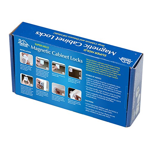 Remember the bear that went over the mountain to see what he could see? Having a baby in the house is a lot like this. Why tempt your little one? Keep baby, older children, even nosy neighbors and coworkers out of your cabinets and drawers. Install Home Solutions Super Hold Magnetic Cabinet Locks with nonmarring adhesive. No one will see the strong cabinet magnetic locks that keep cabinets and drawers shut tight! Lock kitchen, bathroom, laundry room and office cabinets. Touch the key to the cabinet surface to open doors and drawers quickly. Enable and disable locks with a handy switch. No batteries are needed! Home Solutions magnetic locks are stronger than others on the market with magnets that hold securely through thicknesses of up to 1.5 inches. These carefully engineered hidden magnetic locks work with wood, laminate and plastic cabinets, and function equally well for doors or drawers. Not even stone countertops stop the super-strong Home Solutions magnetic baby locks! Home Solutions baby safety locks are so easy to install No tools are required! Forget about measuring and marking, drilling holes and tightening screws! Home Solutions magnetic locks come with 3M adhesive tape on the lock and the catcher. One lock and latch are already loaded into the installation cradle when your hidden magnetic locks arrive. Just align the latch with the edge of the cabinet, stick it, close the door or drawer, and the magnetic locks for cabinets will be in position. Pull off the installation cradle, insert a new lock and catcher and repeat until all locks are installed. Detailed instructions with color photos come in every pack! When you no longer need to lock your cabinets, simply peel off the locks and adhesive. Buy with confidence. If you are not completely satisfied with your Home Solutions Super Hold Magnetic Cabinet Locks, please return the set for a full refund. 0