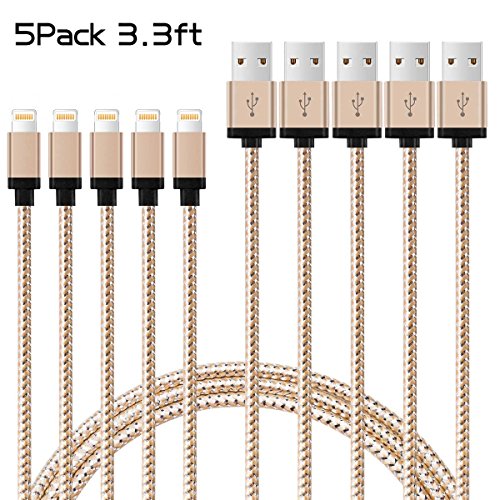-. Title : Lightning to USB Cable, ASICEN (5 Pack) 3.3ft Nylon Braided USB Cord & Lightning 8-Pin Connector Data Wire Sync Fast Charging Cord for iPhone 7/6/5/SE, iPad Air, Mini 2/3/4, iPod Touch, etc