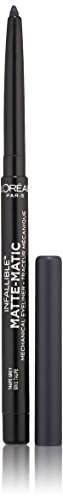 Create your signature matte eyeliner look with L’Oral Paris Matte-Matic mechanical colored eyeliner in four matte shades. Our long wear, smudge resistant formula delivers intense matte color. This waterproof gel cream eyeliner glides on easily for up to 24HR wear and comes with a built-in sharpener. • Up to 24HR long lasting wear • Gel cream formula for smooth application • Intense colored eyeliner • Matte eyeliner Application Tips: For thinner lines, hold liner so tip is horizontal. For thicker lines, hold liner so tip is vertical. Start by the inner corner and apply across lashline to outer corner of eye. Apply to bottom lid as close to waterline as possible. Connect top and bottom lines at the outer corner of the eyelid. Eye cosmetics in a scratched, infected or irritated eye and scratches from cosmetic eye applicators can lead to eye damage, and in extreme cases, even blindness. If your eye is scratched, stop using all eye cosmetics and go to an ophthalmologist immediately. Never apply this product in a moving vehicle.Feature