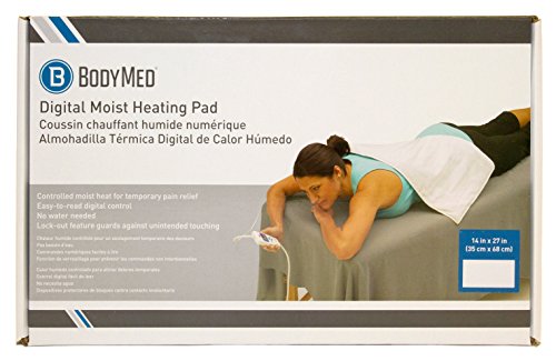 -. Binding : Health and Beauty -. Brand : BodyMed -. Feature : Controlled moist heat for temporary pain relief associated W/ muscle strains & sprains / Includes heating pad, fleece cover and instruction manual / Does not require water - produces its own moisture using humidity in the air / Temporarily eases back pain caused by overexertion, stress and strain / Easy-to-read LCD control -. Label : BodyMed -. Manufacturer : BodyMed -. MPN : ZZHP -. PackageQuantity : 1 -. PartNumber : ZZHP -. ProductGroup : Health and Beauty -. ProductTypeName : HEALTH_PERSONAL_CARE -. Publisher : BodyMed -. Studio : BodyMed -. Title : BodyMed® ZZHP1427 14" x 27" Black Digital Electric Moist Heating Pad