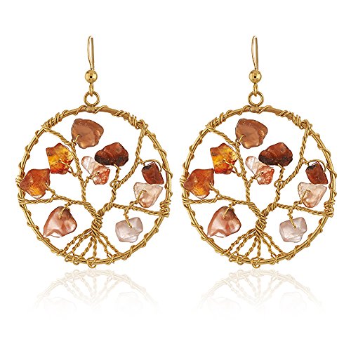 -. Feature : Gold-plated dangle tree of life earrings perfect for your everyday casual style / Round frame for your beaded tree creates a finished look / Beaded by hand and nature inspired / Simple and classic black velvet pouch packaging for storage and a nice gift presentation / Search Amazon for Chuvora Gold-plated gemstone tree of life jewelry for matching pieces